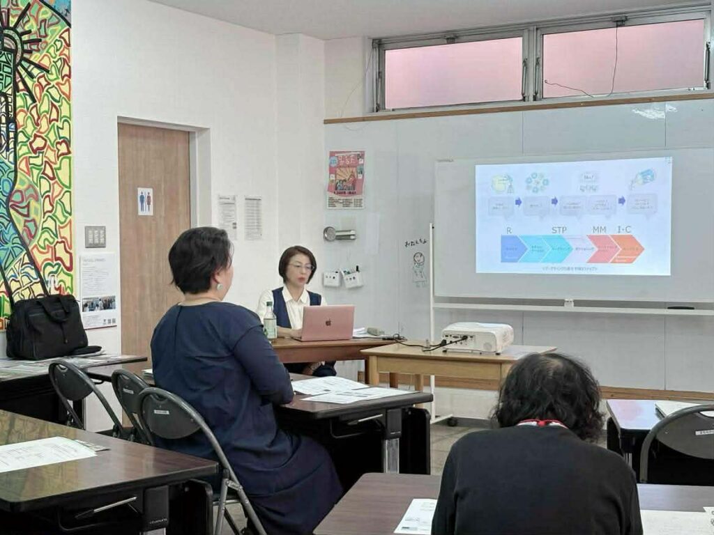 この講座には、開業している方や今後起業を検討したい方がご参加いただきました。従来のマーケティング知識に留まらず、消費者とコミュニケーションを図りながら共に創っていく「共創コミュニケーションマーケティング」に共感しながら学びを深めていきました。基本的な理論を学び、ワークを実施しながら参加者同士でフィードバックも行いました。 講座の最終日には、”わたしの共創コミュニケーションマーケティングプラン”を策定しました。