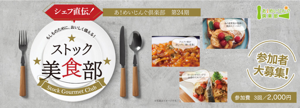 今年15年目を迎え、今回で24期目を迎える大人女子部活動『あ!めいじんぐ倶楽部』。今期はストック美食部として活動します。